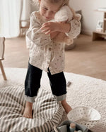 Big comfortable floor cushion, 60 cm, in sturdy canvas cotton. Handle on the side, so you can bring the cushion wherever you want. Removable cover. Cover and cushion can be washed separately.