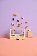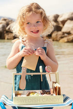 We love candy! The Swedish Candy Play Shop is now open for all kids with a sweet tooth. Our candy shop is filled with delightful treats like gummy bears, mushrooms, cola bottles, punch pralines, chewy cherries, and lollipops—all made of wood! Don’t forget the well-loved “saltlakrits” (salty licorice sticks), which pair perfectly with the raspberry stick for a super-combo. In Sweden, sweets are often enjoyed during the traditional “lördagsgodis” or “Saturday candy,” where families indulge in treats at the end of the week. With a mix of bold and mild flavors, Swedish candy offers something for everyone to enjoy. The set includes a candy stand, candy plier, three paper bags, three lollipops, and various wooden candy pieces. The included plier helps children practice their hand movements as they pretend to sell and buy candy, making the play experience engaging and fun. Just like in a candy store ... This candy shop encourages imaginative play, allowing children to create their own candy stories and share them with family and friends.