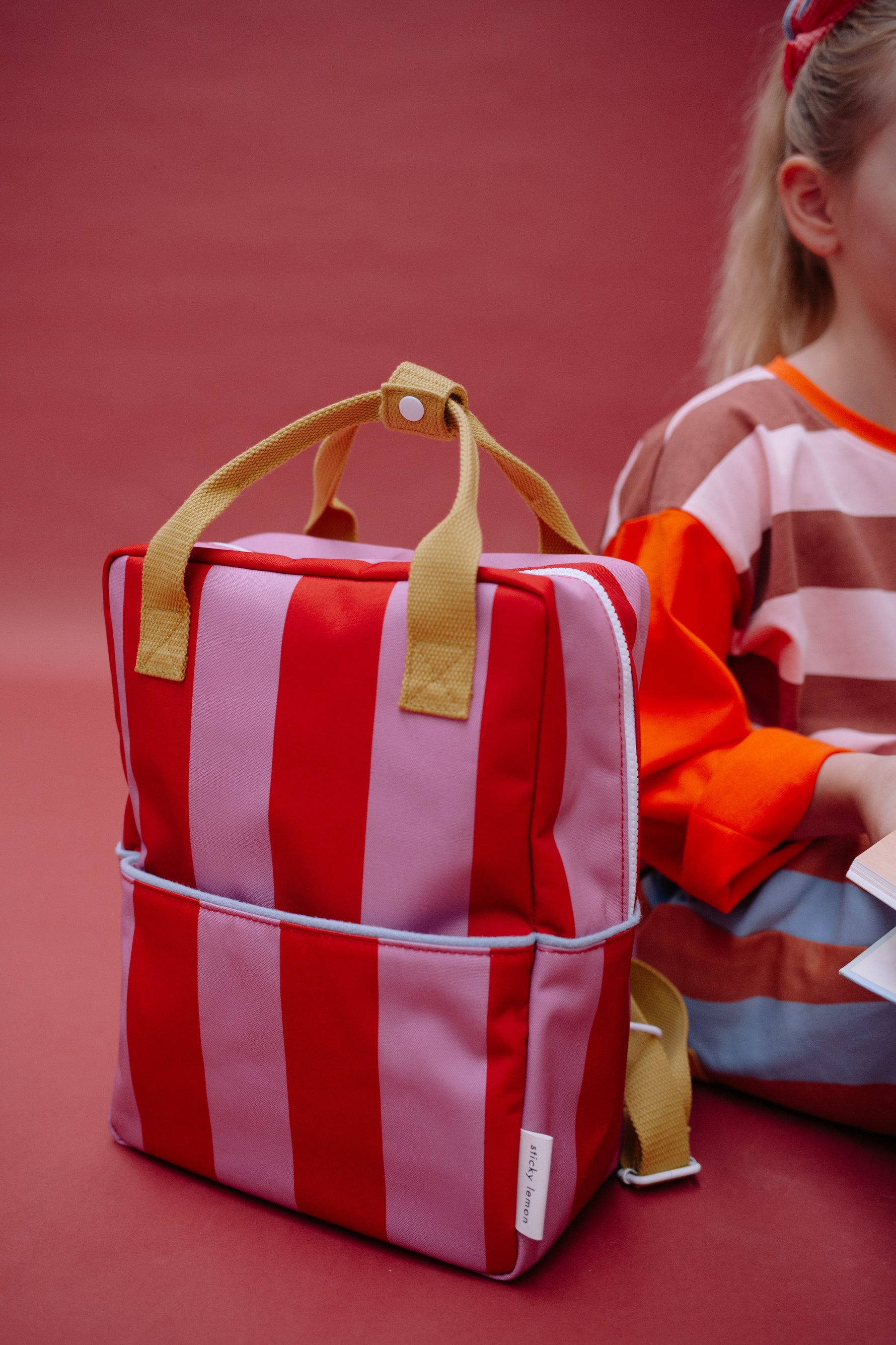 BACKPACK MEDIUM - STRIPES | RED APPLE + ROSEBAY PINK