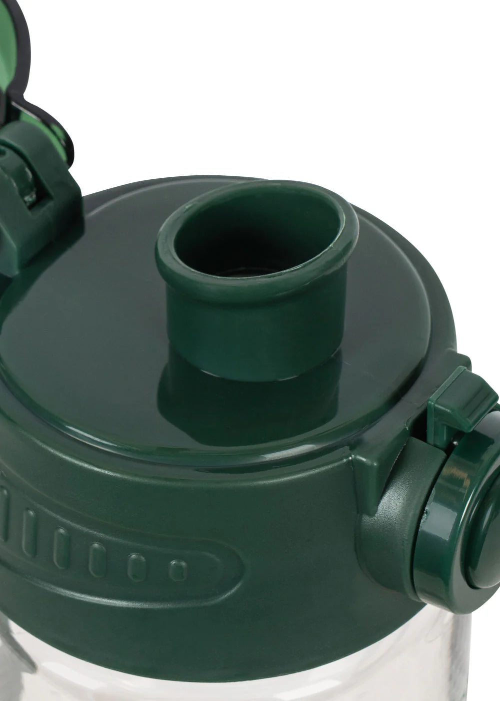 Water bottle with an easy click-up lid. Convenient to bring on the go, it only takes a quick push to pop the bottle open and drink, and the same to snap it shut, keeping it clean and leak-free.