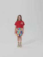 Red t-shirt. Designed with short sleeves, loose fit, round neck and cropped length. Made in Spain.