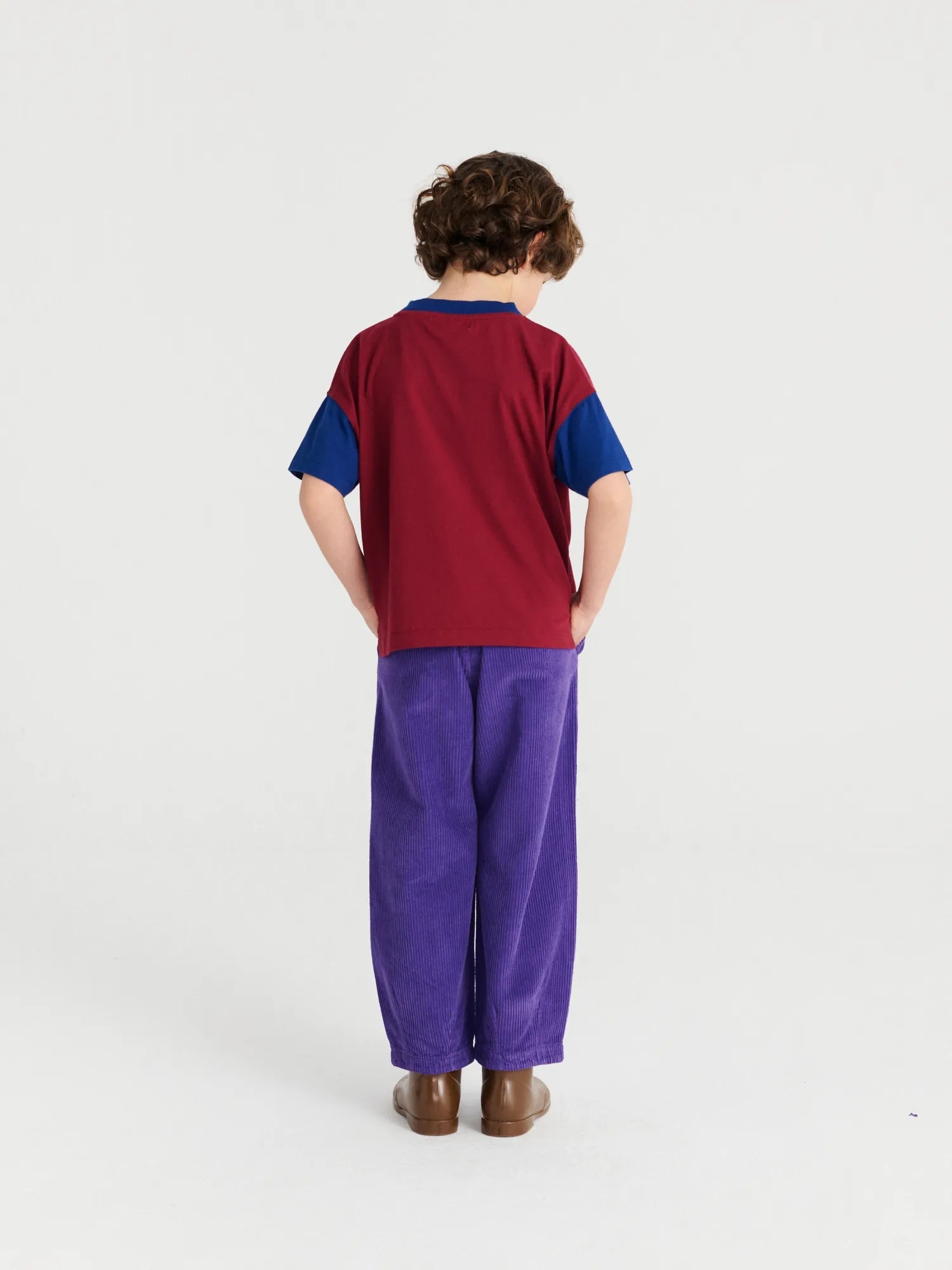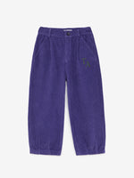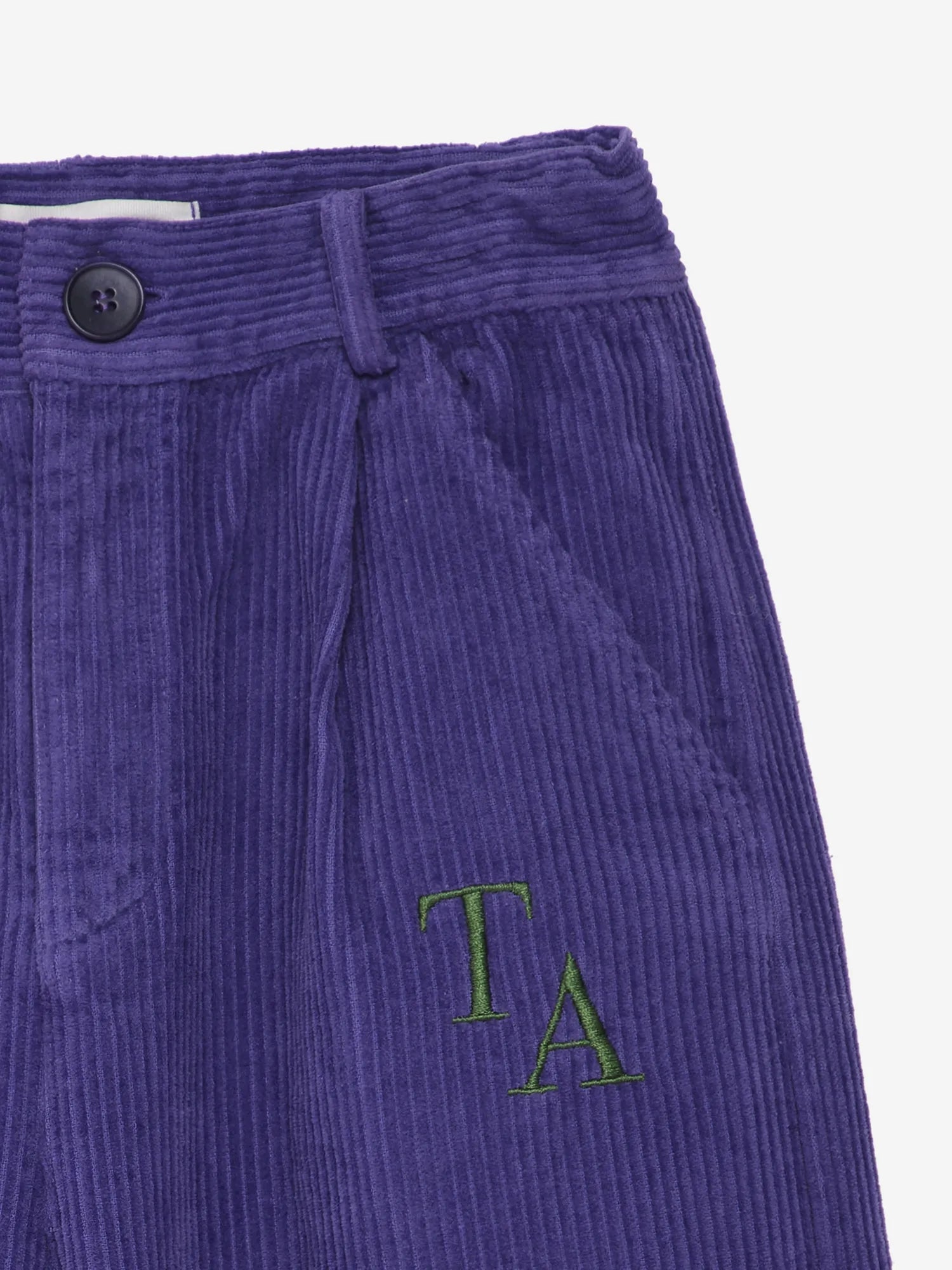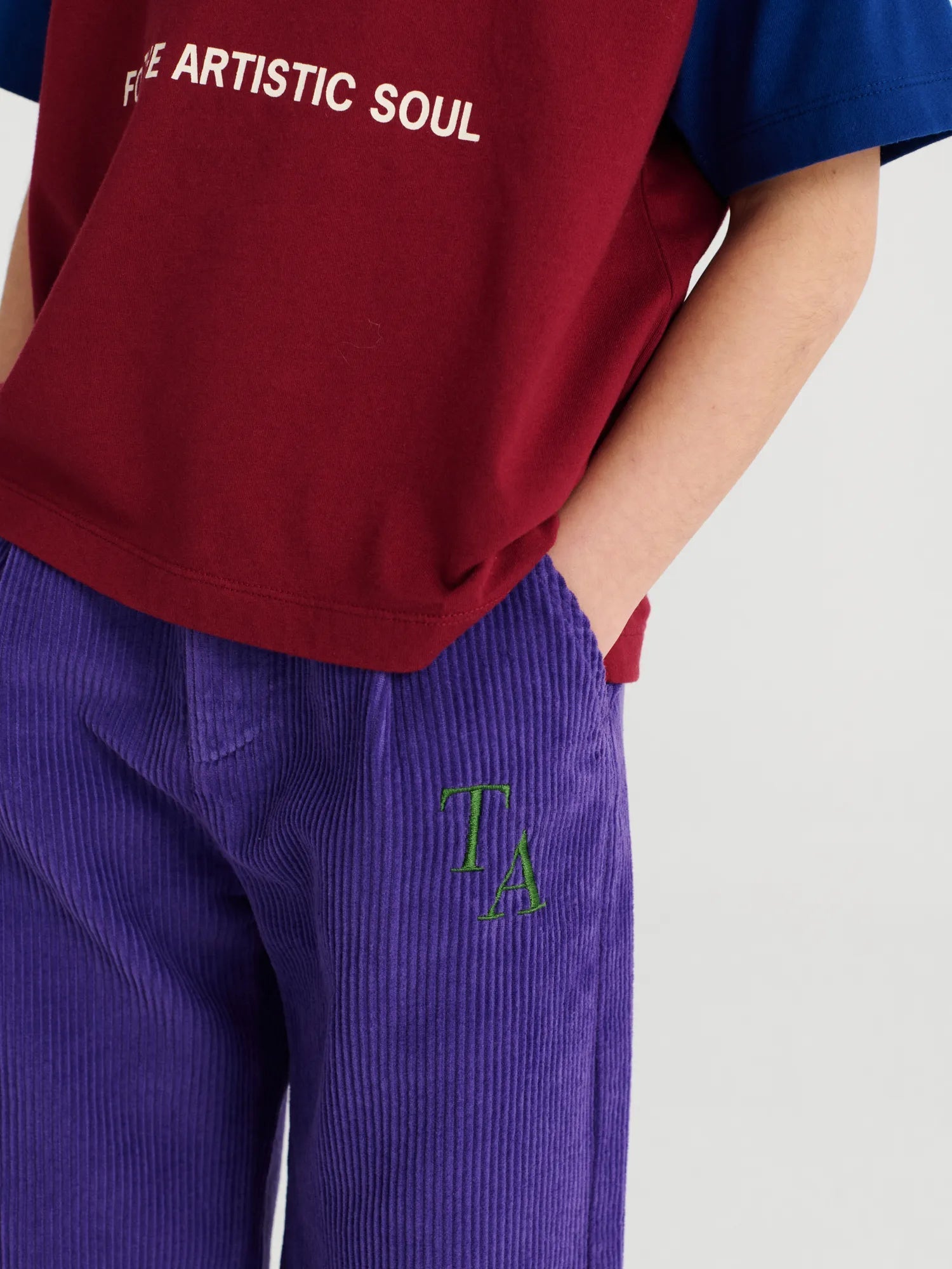 Trousers nº01 in Violet Indigo are made of 100% cotton corduroy and have our TA logo embroidered on the front in contrast color. These slouchy chino pants are designed with adjustable waistband, slash pipped pockets and front zip and button fastening. They have a cocoon fit. Made in Spain.