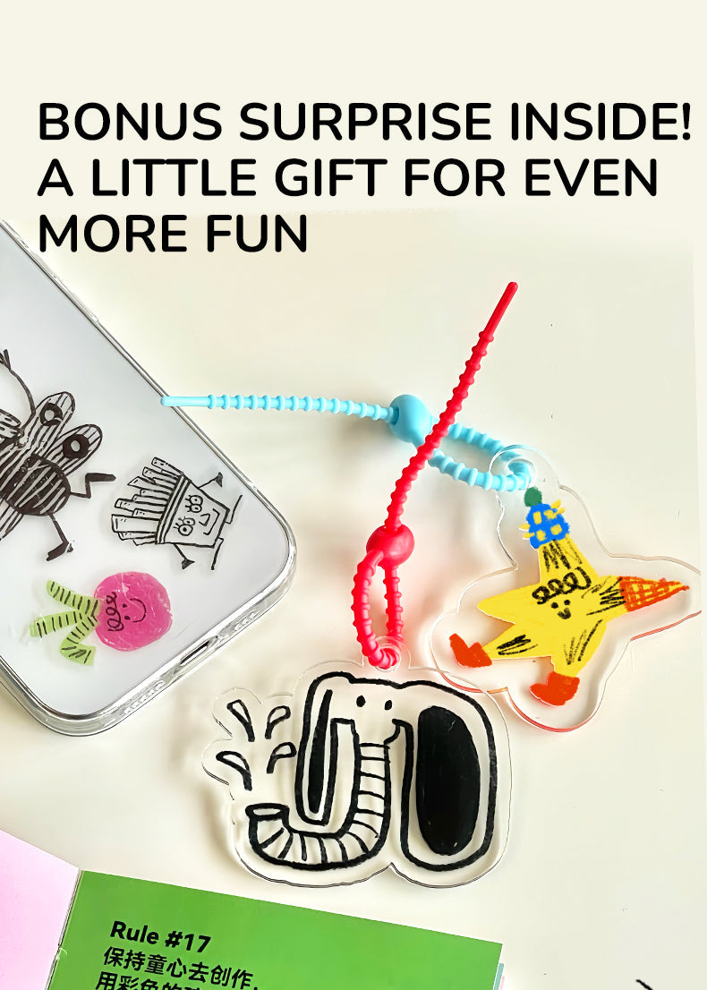 Įdomi papildoma staigmena! Viduje rasite mažą staigmenos dovanėlę! Vaiko sukurtas universalus pakabukas, kurį galėsite pakabinti ant vaiko kuprinės, vandens buteliuko, raktų ir pan.