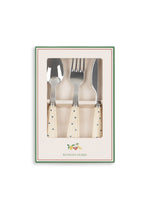 Cutlery set with sweet Konges Sløjd signature cherry print and a wavy shape. Made from stainless steel with PCTG handles.
