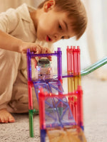 Pastelinės spalvos suteikia rinkiniui unikalią estetiką ir skatina kurti savo lenktynių projektus. Magnetinės plytelės lengvai susijungia, todėl galite laisvai eksperimentuoti su trasos išdėstymu, aukščiu ir nuolydžiu. Šis rinkinys puikiai tinka tiek žaisti vienam, tiek konstruoti kartu su broliais ir seserimis ar draugais.