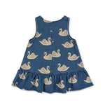 Sleeveless dress in a soft denim quality with a flattering flared skirt. Crafted from heavy organic cotton.