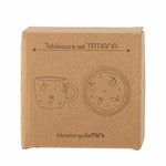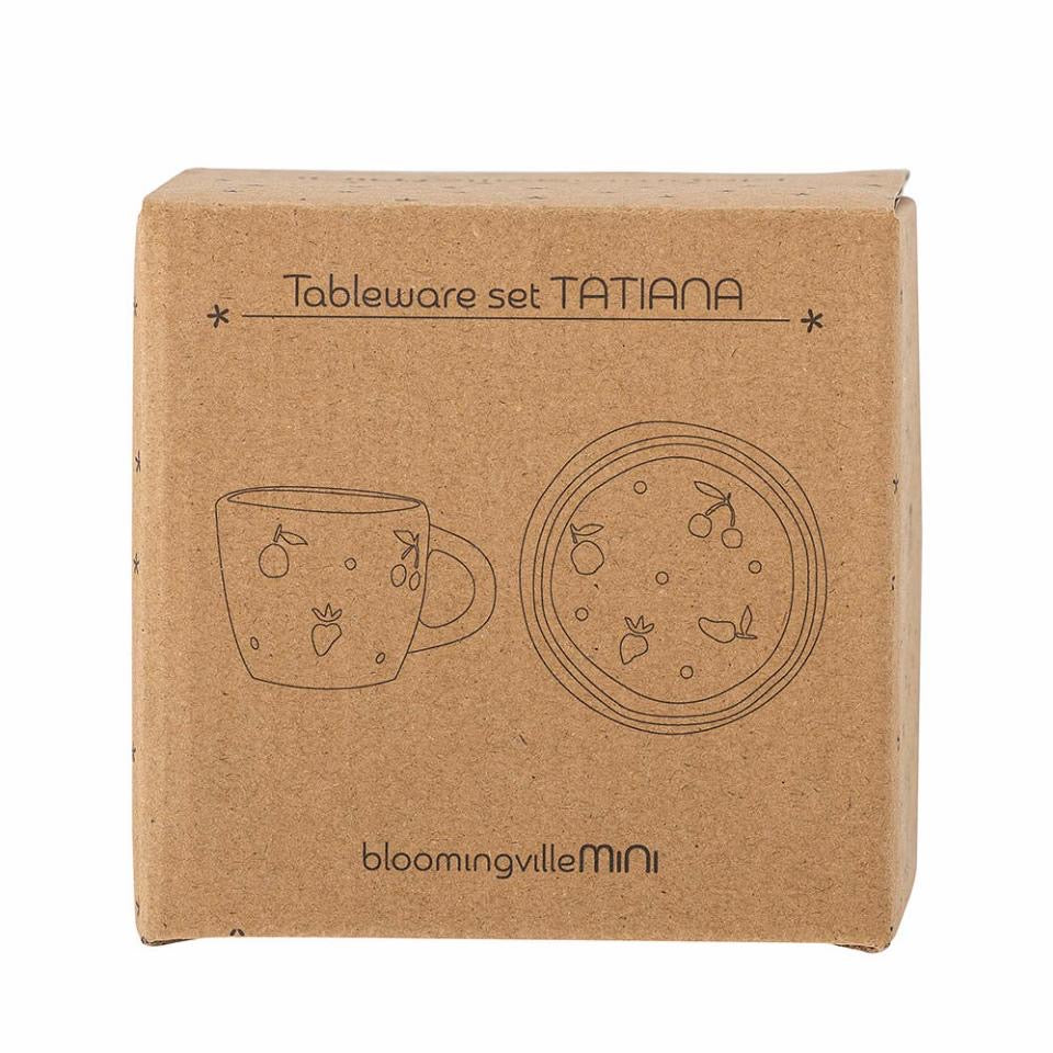 „Bloomingville MINI“ „Tatiana“ stalo serviravimo rinkinį sudaro puodelis ir maža lėkštutė, puikiai tinkantys popietės užkandžiams. Jaukus, rankomis tapytas raštas ir rinkinio pateikimas mieloje dovanų dėžutėje paverčia jį puikia dovanos idėja. Rankomis tapytos variacijos suteikia jam unikalumo.