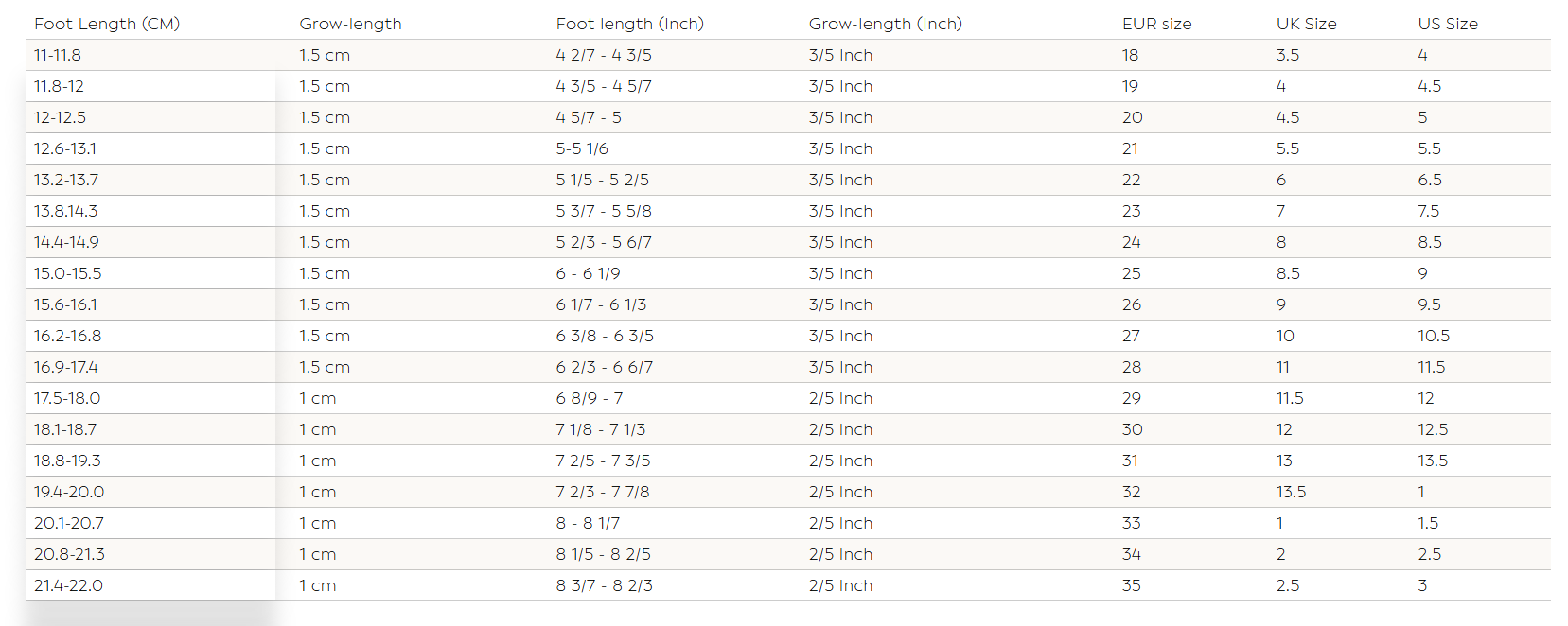 Shoe size