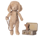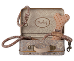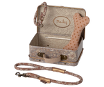 This set is all you need for your soft plush dog. The set includes a bone, collar and leash packed nicely in a metal suitcase with a beautiful Maileg print.