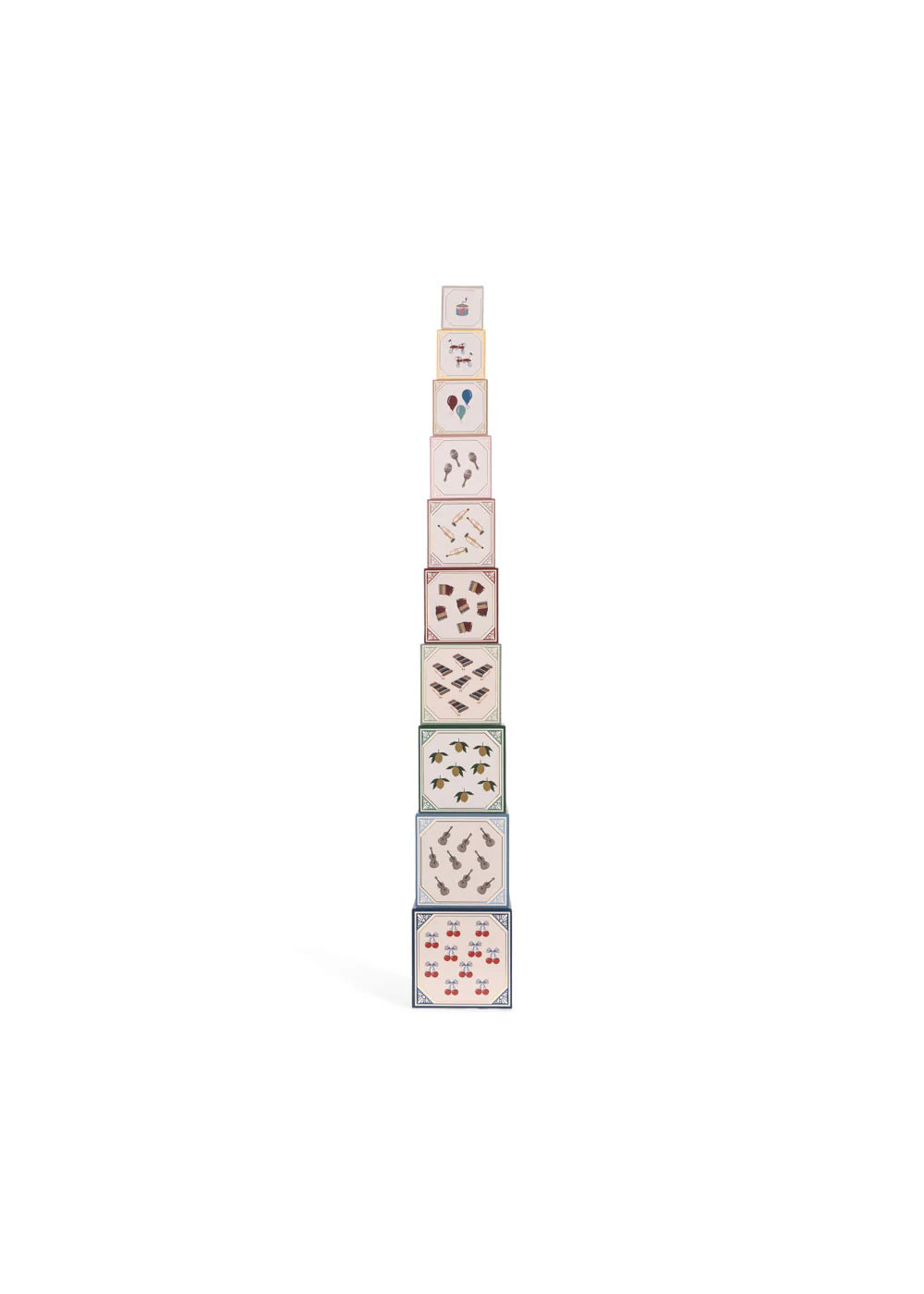 Cardboard stacking blocks with numbers from 1-10. Includes 10 blocks to build with.