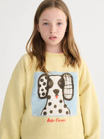 Yellow sweatshirt. Designed with ribbed cuffs, loose fit, ribbed bottom, round neck and fleece. Made in Spain.